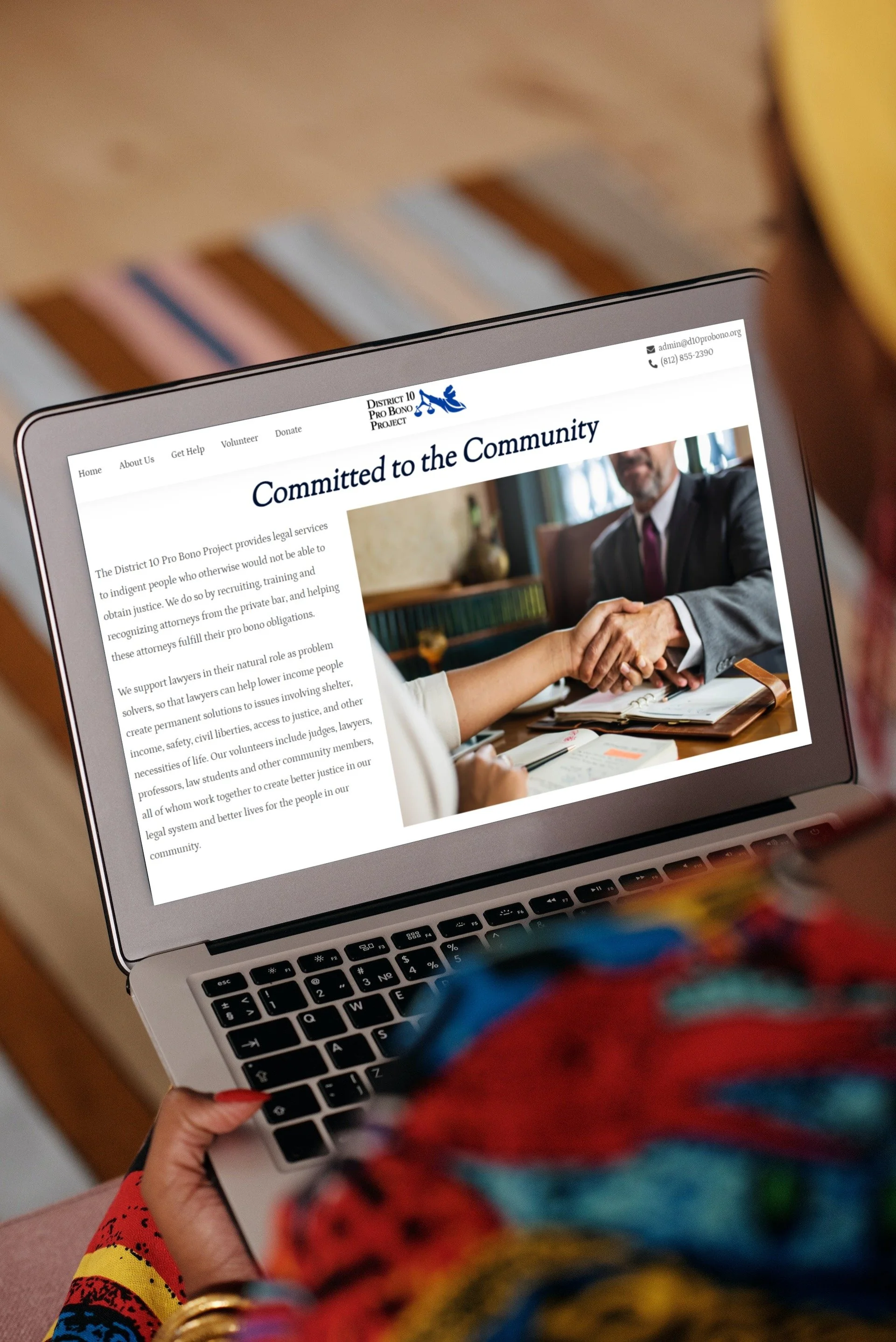 In addition, I incorporated images that vividly depict the organization's purpose, aiding in a better understanding of what District 10 Pro Bono stands for. Consistent text styles, fonts, and headers across pages were implemented for efficient reading. The final versions of the homepage aimed at improving visibility, usability, and overall user experience on d10probono.com.